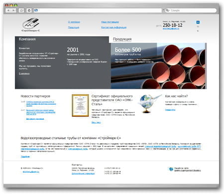 Главная страница нового сайта позволяет пользователю сразу перейти в каталог продукции, либо сразу, без перезагрузки страницы, ознакомиться с профилем компании